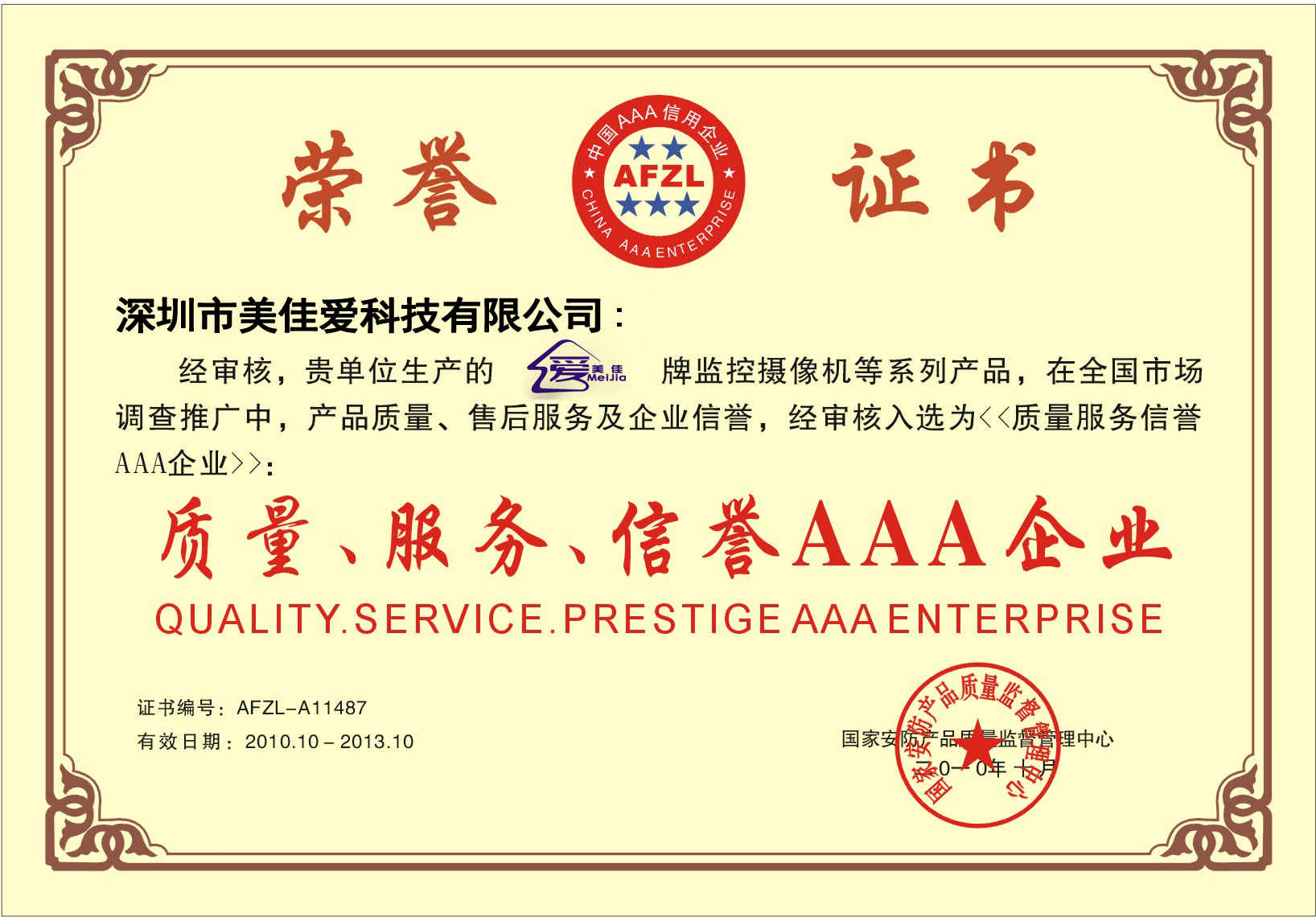 質(zhì)量、服務(wù)、信譽AAA企業(yè)證書副本